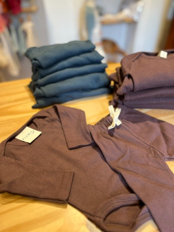 Conjunto de body y babucha de morley de algodón unisex. Body con cuello americano, super practico para la hora del cambio, y la babucha trae puño y elástico en la cintura y también detalle de cordón super canchero.